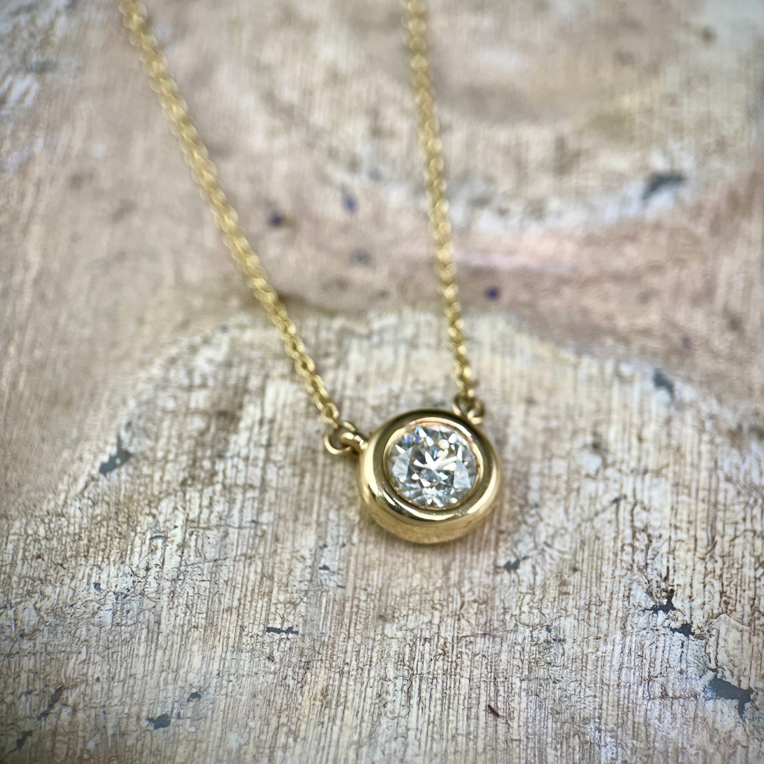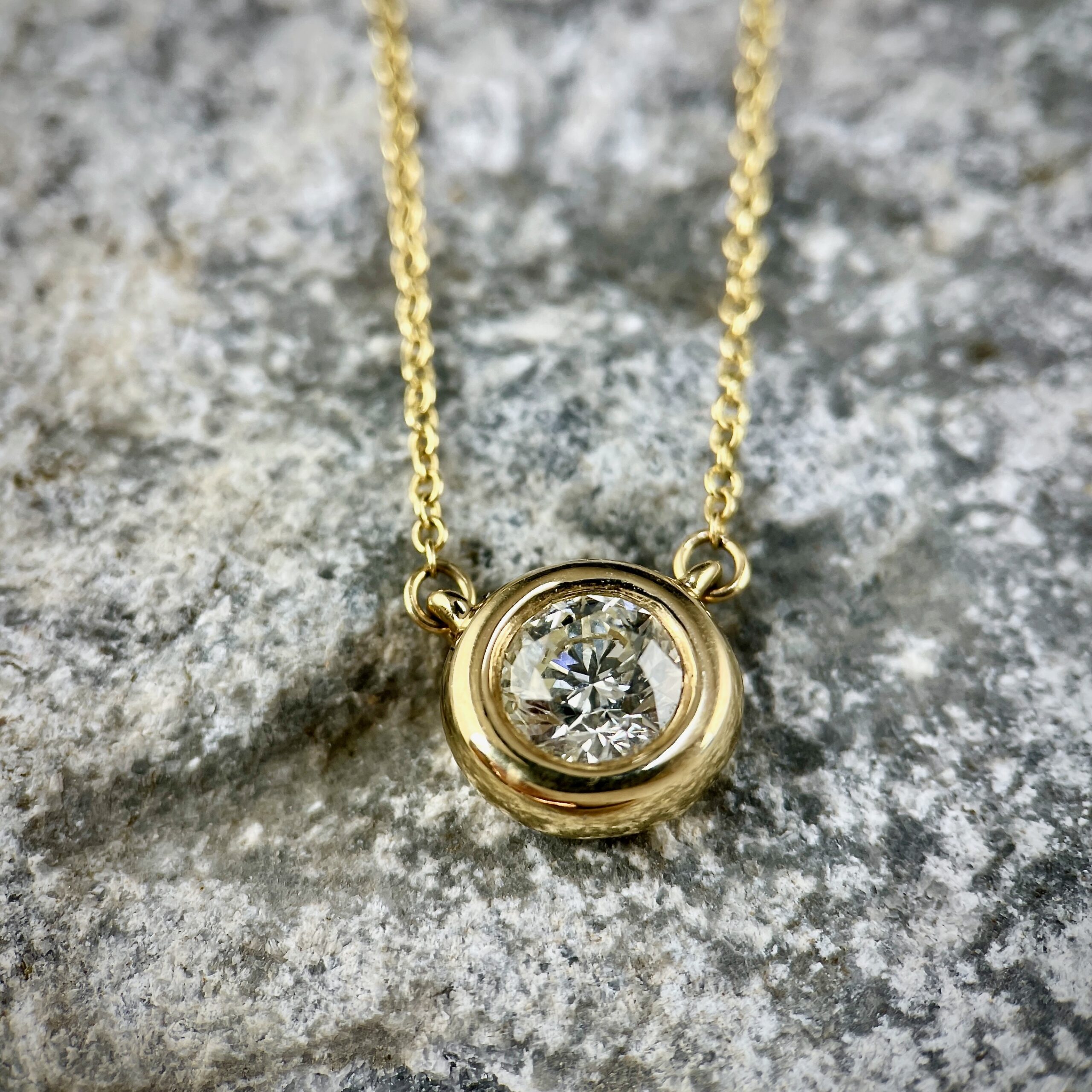 0.50ct Round Brilliant Diamond bezel set in 14K yellow gold pendant