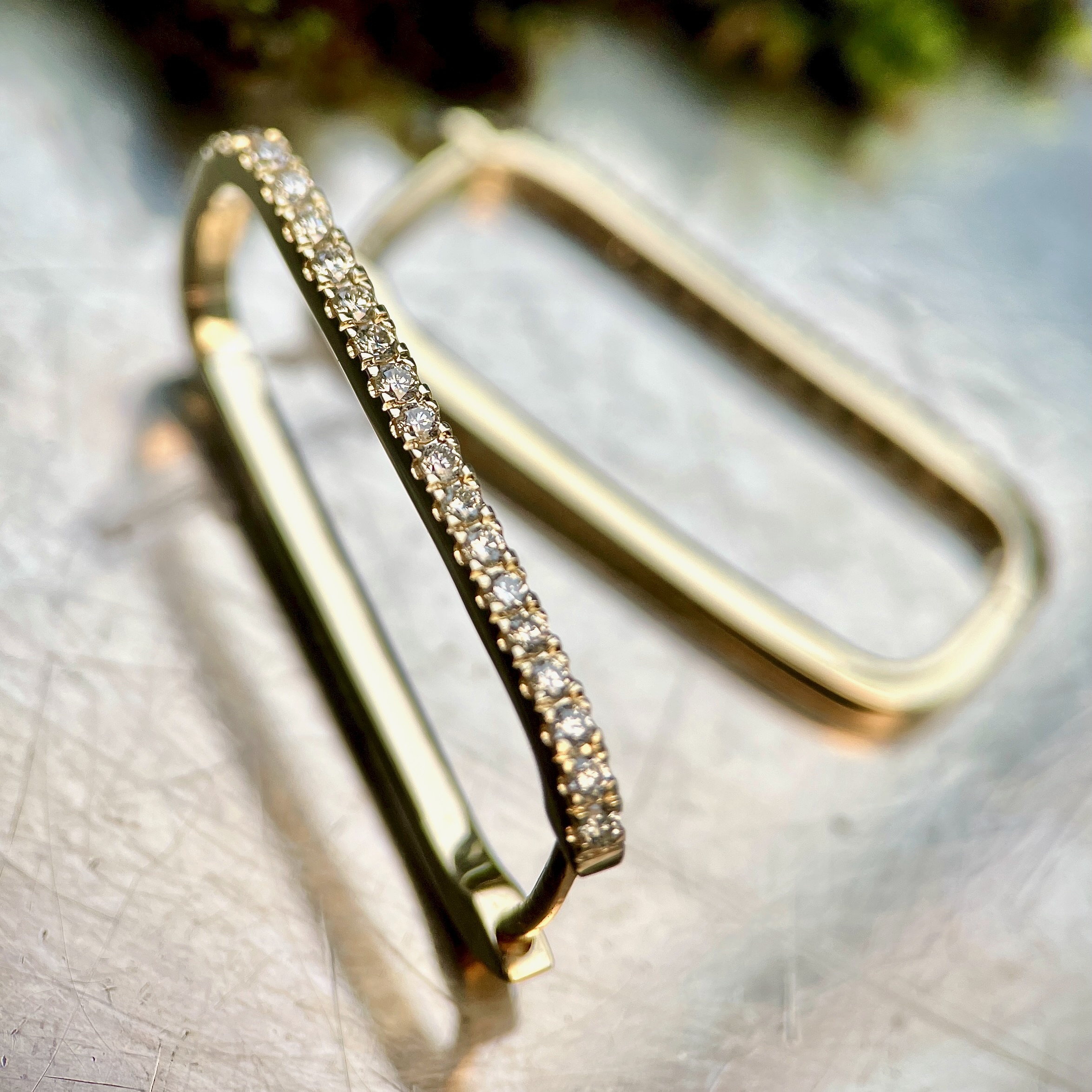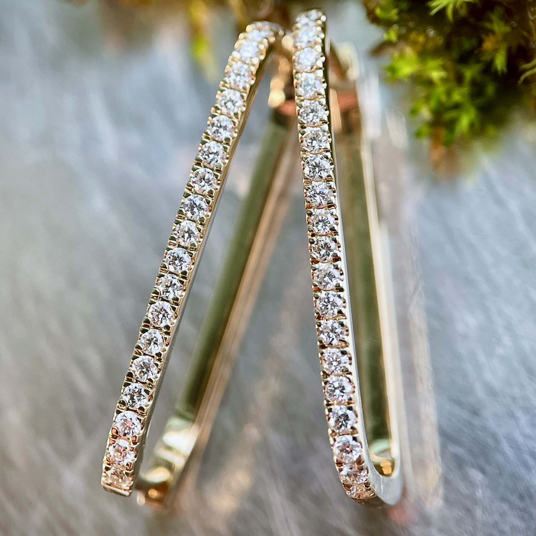 / 14K Yellow Gold Diamond Hoop Earrings