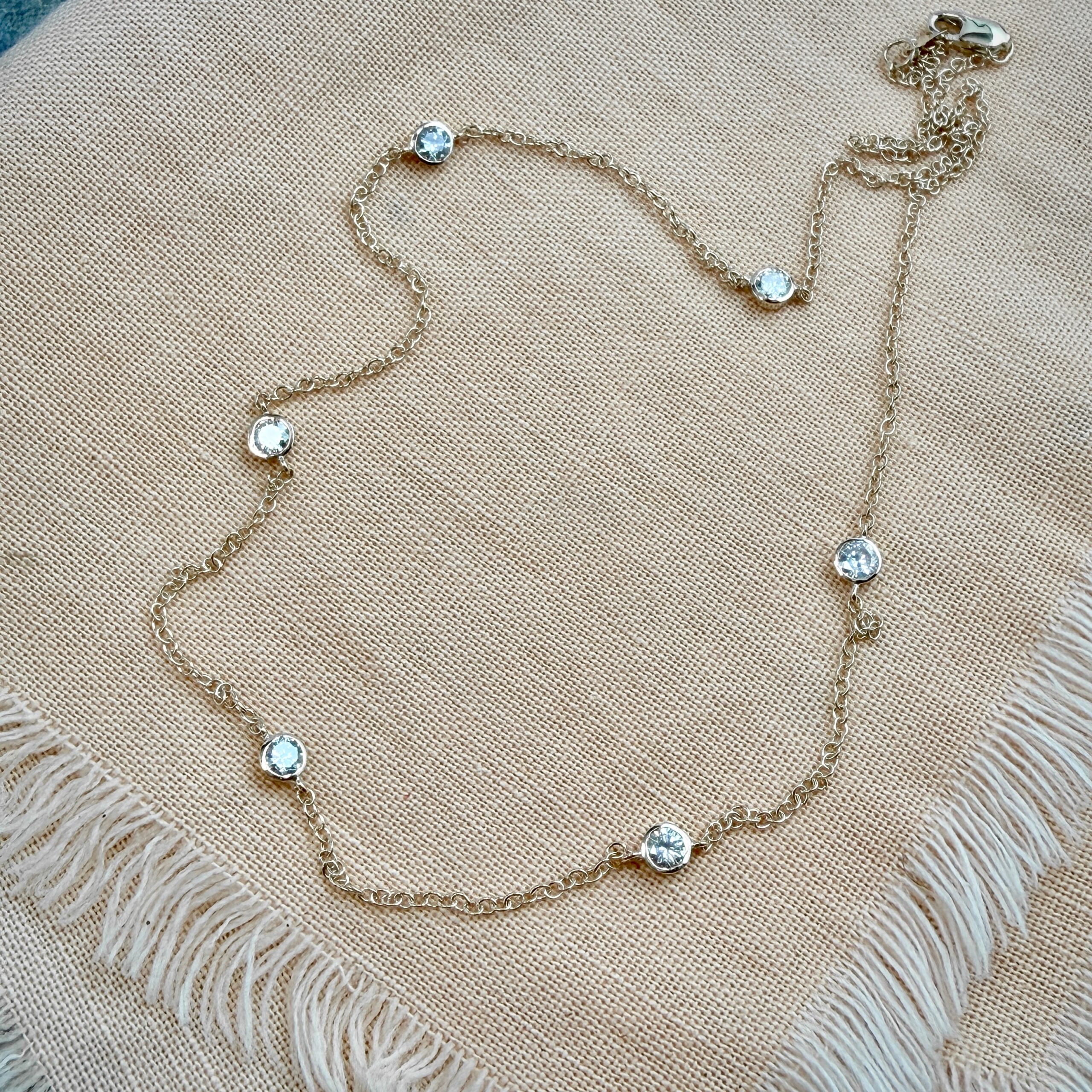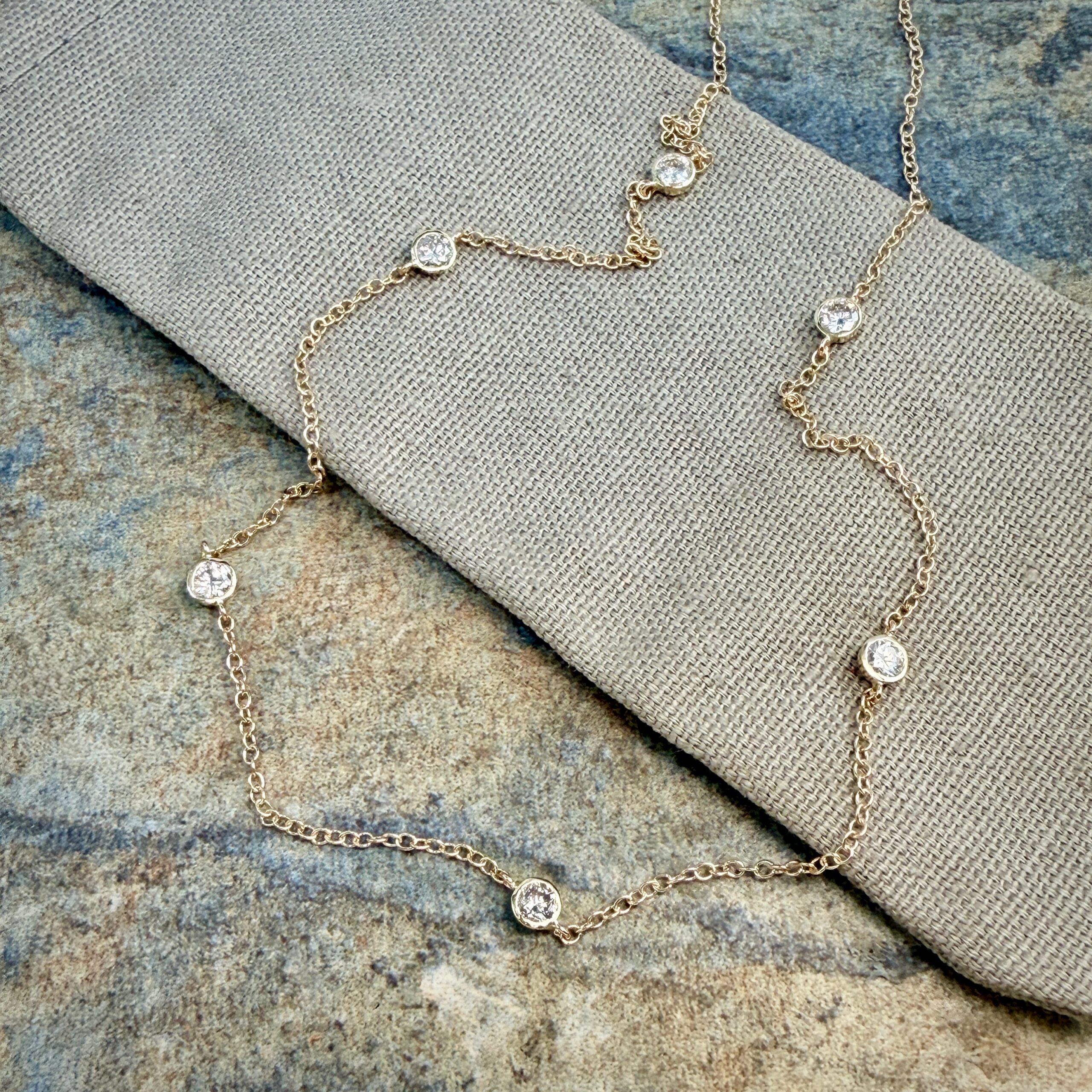 6=0.87ctw diamonds  in 14k yellow gold, 16″ Diamonds-by-the-yard necklace.