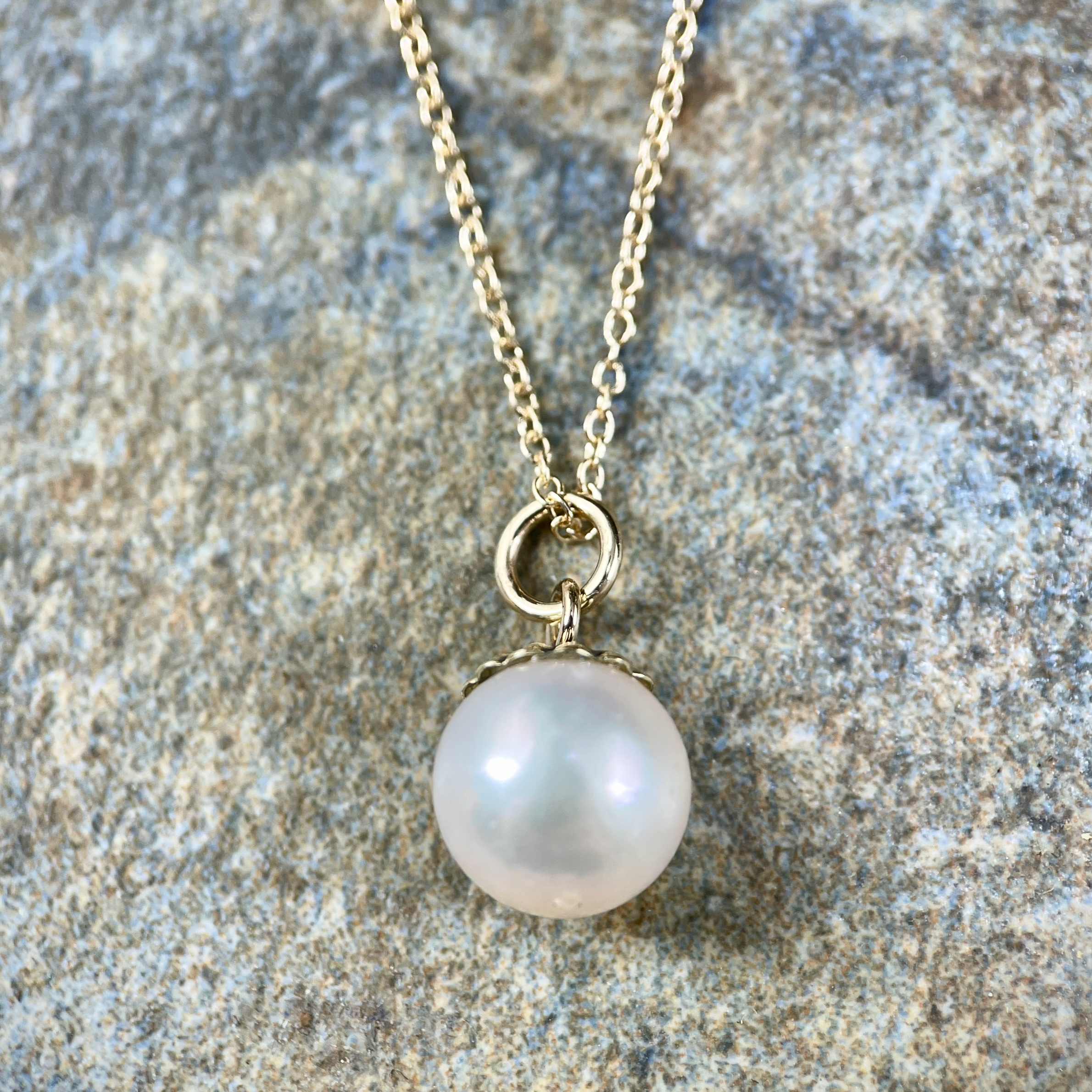 Natural pearl pendant with 14k yellow gold cap and chain.